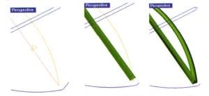 For example, to create the bow, we'll input a single, straight polyline representing the bow into Profile Placer much the same way we would a ring rail. Select a profile shape for the bow and use the dimension sliders and Set Profile to place a profile along the track. Sweep 1 – with the straight line as the track curve and the profile every bit the cross-section – is the surface tool to complete this office of the design. Use Cap Planar to close this model.