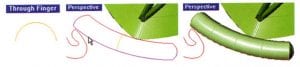 - (L-R) Curve Mesh Model in Through Finger and Side View viewports to utilise to curved surface on height of ring.
